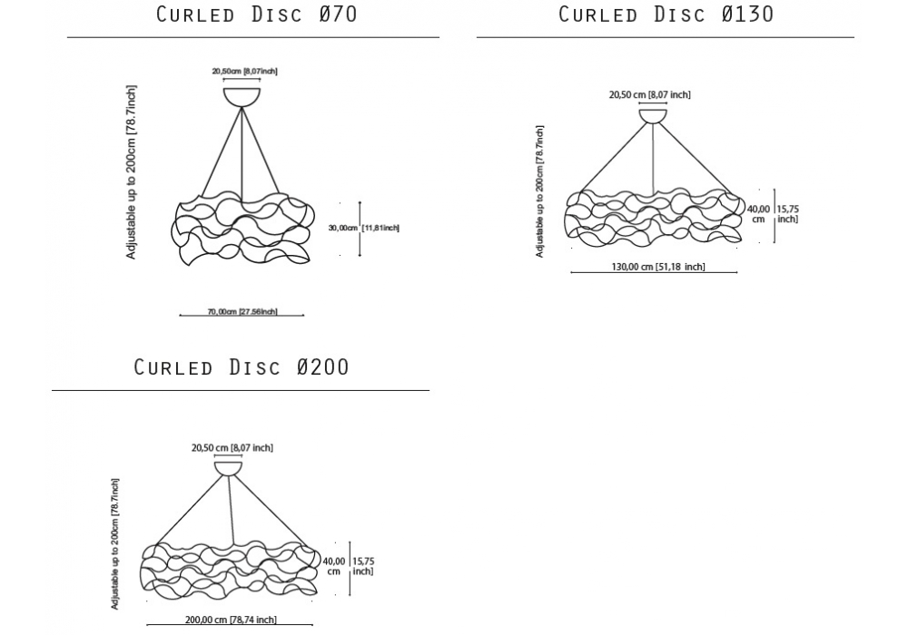Curled Disc diseñada por Jan Pauwels para Quasar es una lámpara de suspensión con un cuerpo estructurado por filamentos metálicos que se cruzan. Las fuentes de luz están ancladas en los filamentos y son de tipo LED. Bajo pedido también está disponible en versión LED Downlight. Curled Disc está disponible en diferentes tamaños y acabados.