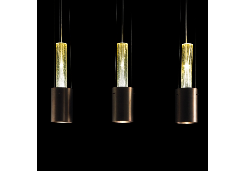 Ghost Light diseñada por Massimo Castagna para Henge es una lámpara colgante con cuerpo cilíndrico central de resina transparente y difusor de latón bruñido a mano. La fuente de luz utilizada es LED. Ghost Light está disponible en diferentes tamaños y acabados.