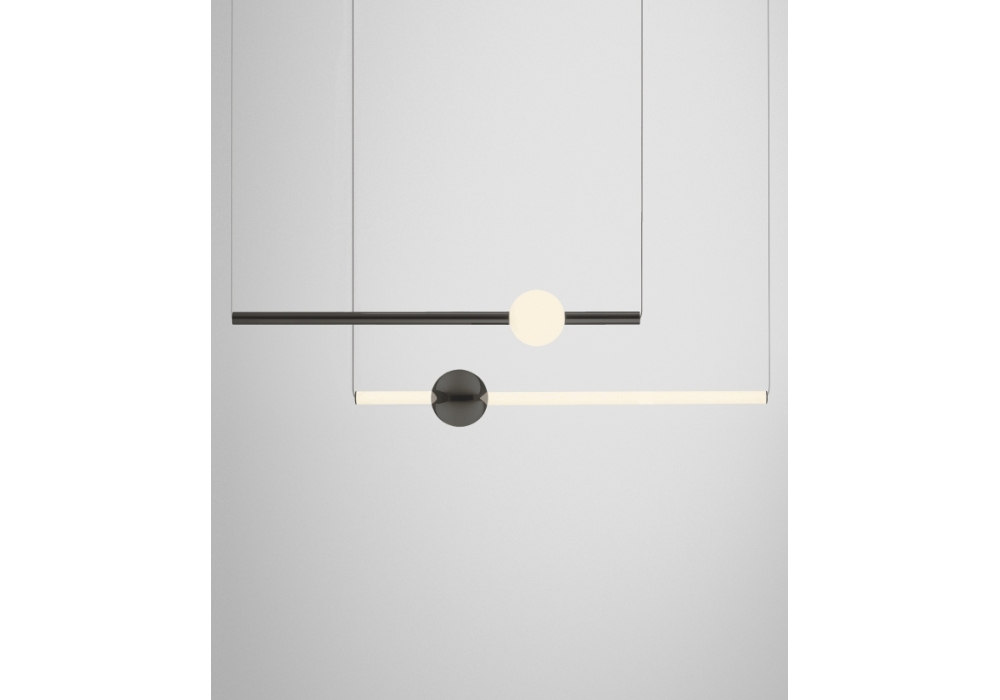 Orion Globe Light producida y firmada por Lee Broom es una lámpara de suspensión realizada con una varilla de acero tubular y una esfera de cristal opal. La fuente de luz adoptada es del tipo LED regulable. Orion Globe Light está disponible en diferentes acabados.