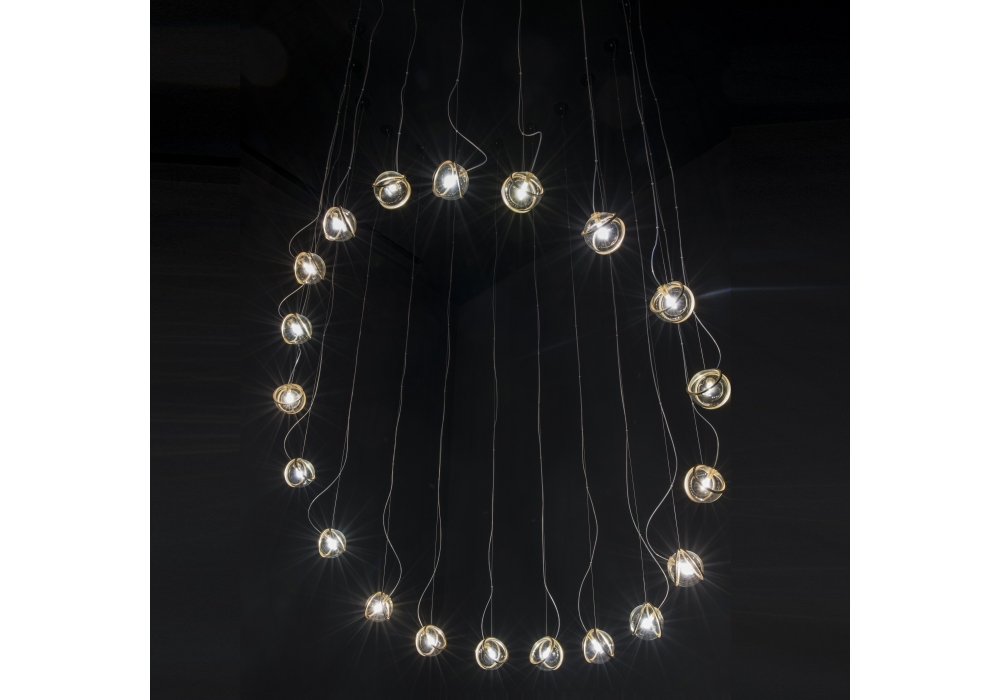 Pug diseñada por Jean-François Crochet para Terzani es una lámpara de suspensión con estructura en latón y difusor de vidrio. La fuente de luz utilizada es LED en la versión regulable o no regulable. Pug está disponible en diferentes acabados.