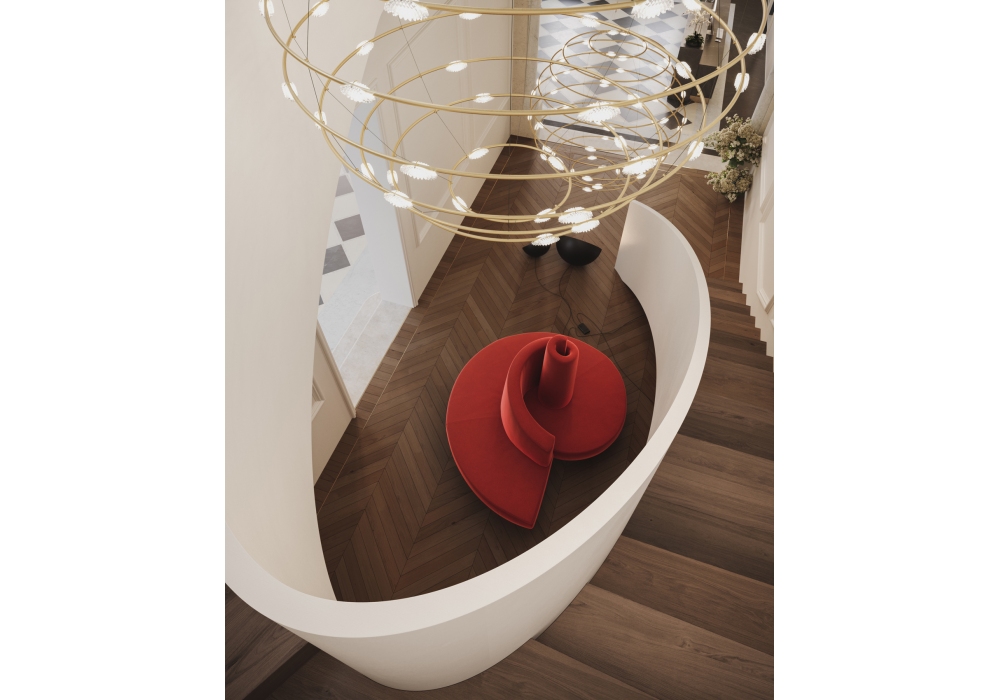 Petits Bijoux diseñada por Enzo Catellani para Catellani & Smith es una lámpara de suspensión con base blanca, anillos en latón sin tratar, cubiertas LED transparentes con clips en latón. Disponible en dos tamaños.