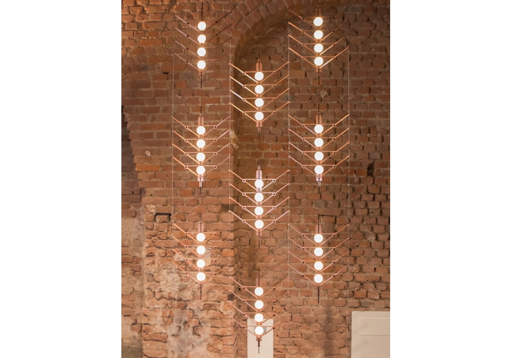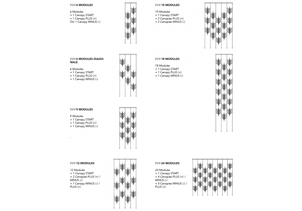 VVV diseñada por Vantot studio para DCW Éditions es una lámpara de suspensión de diseño de "cortina", realizada en aluminio anodizado. Disponible en 2 acabados: oro o plata y diferentes composiciones.