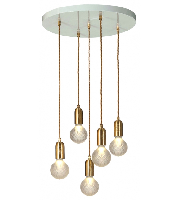Crystal Bulb producida y diseñada por Lee Broom es una lámpara colgante con una placa de anclaje circular de acero. los tres difusores son de cristal de plomo sostenidos por una cuerda textil y protegen una fuente de luz LED regulable. Crystal Bulb está disponible en diferentes versiones y acabados.