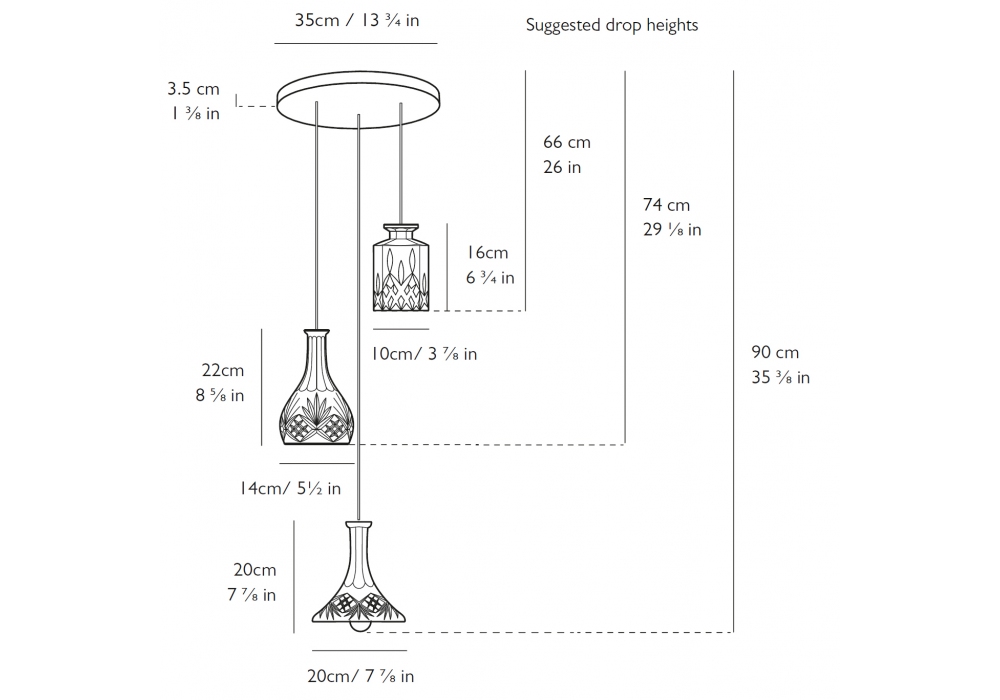 Decanterlight Chandelier 3 Tier producida y firmada por Lee Broom es una lámpara de suspensión con una placa de soporte de acero circular. Los tres difusores son de cristal artesanal y apantallan una fuente de luz LED regulable.
