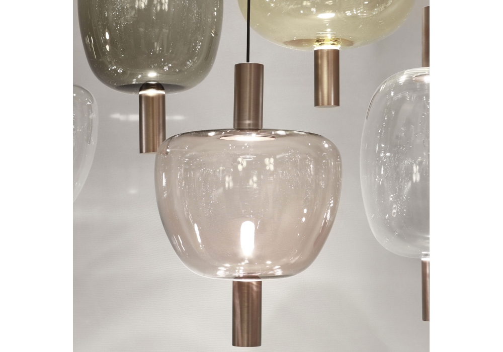 Riflesso SP3 diseñada por Chiaramonte & Marin para vistosi es una lámpara de suspensión con estructura portante en metal pintado. El difusor está redondeado en vidrio y protege una fuente de luz LED regulable en diferentes gradaciones de luz. Riflesso SP3 está disponible en diferentes acabados.