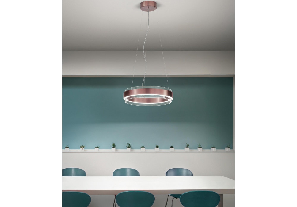 Phoenix diseñada por Andrea Lazzari para Vistosi es una lámpara de suspensión con estructura portante circular de metal. Está hecho de vidrio y protege una fuente de luz LED regulable en diferentes tonos de luz. Phoenix está disponible en diferentes acabados.