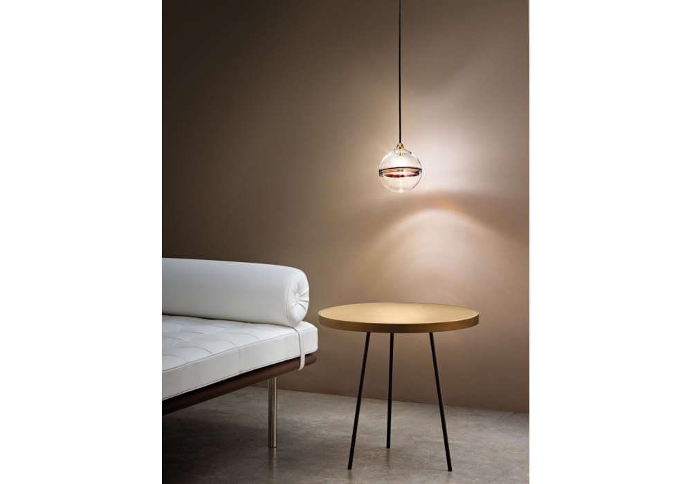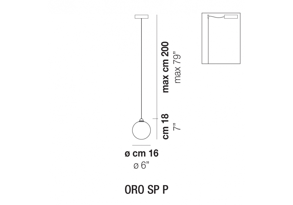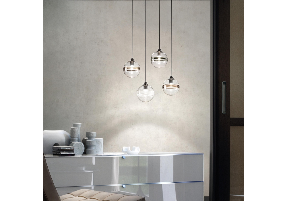 Oro diseñada y producida por vistosi es una lámpara de suspensión con estructura portante de metal pintado. El difusor es esférico de cristal y apantalla una fuente de luz LED o halógena regulable con conexión G9. El oro está disponible en diferentes acabados.