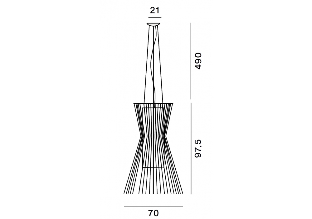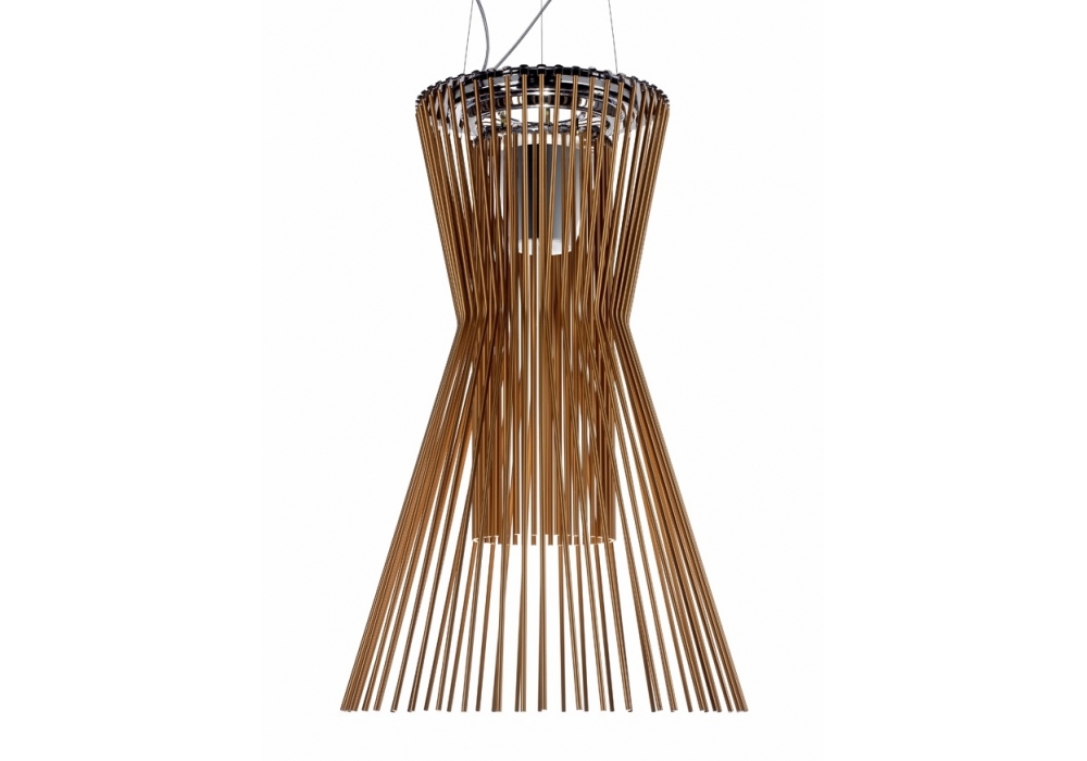Allegro Vivace diseñada por Atelier Oï para Foscarini es una lámpara de suspensión estructurada con varillas cuidadosamente dobladas en aluminio pintado color cobre y metal cromado. La fuente de luz utilizada es del tipo LED regulable o halógena.