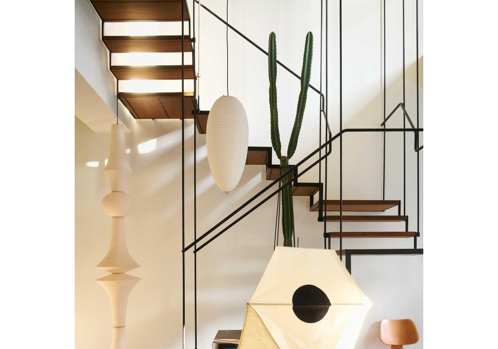 Akari 23A diseñada por Isamu Noguchi para Vitra es una lámpara de suspensión hecha a mano por artesanos japoneses con el uso de papeles washi tradicionales. El nombre deriva de la palabra japonesa 'Akari' que significa 'luz', connotando iluminación y ligereza física.