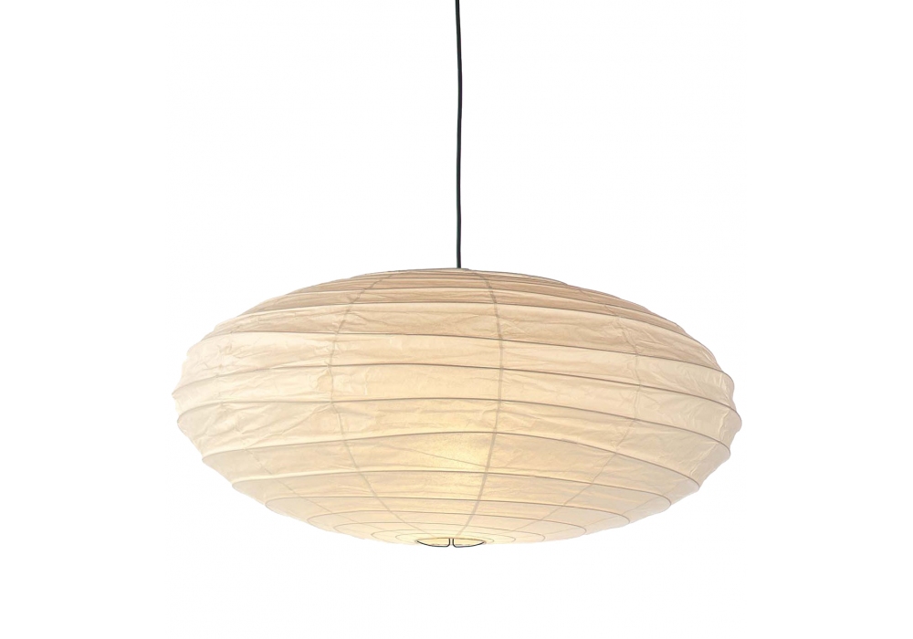 Akari 50EN diseñada por Isamu Noguchi para Vitra es una lámpara de suspensión que forma parte de una serie de lámparas "Le Akari Light Sculputures", hechas a mano por artesanos japoneses que utilizan papeles washi tradicionales. El nombre deriva de la palabra japonesa 'Akari' que significa 'luz', connotando iluminación y ligereza física.
