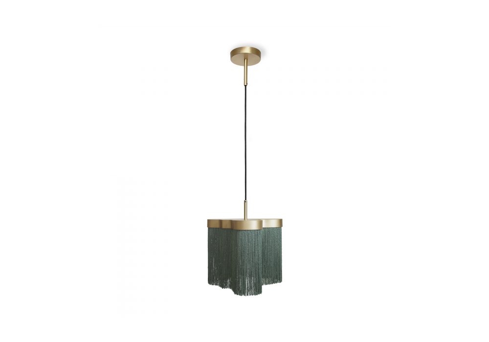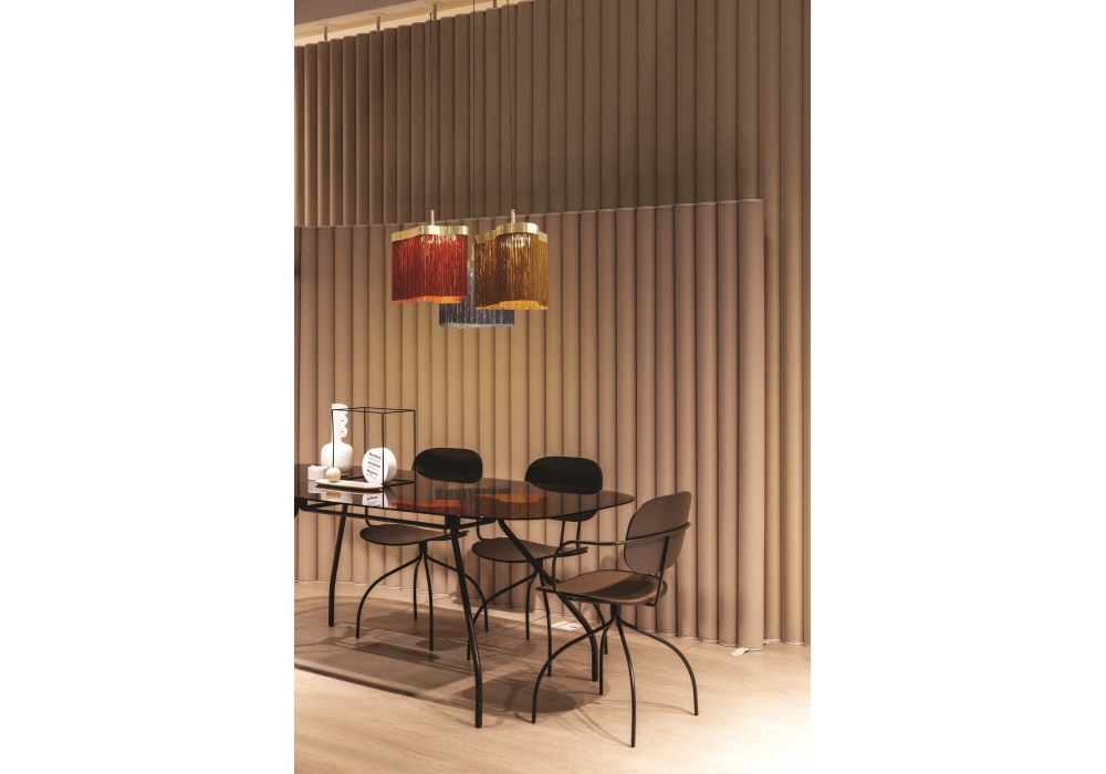 Arcipelago diseñada por Servomuto para Contardi es una lámpara de suspensión con estructura portante y rosetón circular en latón pulido. La pantalla está realizada en tela formada por flecos y protege una fuente de luz LED con sistema regulable o estándar. Arcipelago está disponible en diferentes acabados de flecos, longitud de cable de suspensión variable y versiones de control de luz.