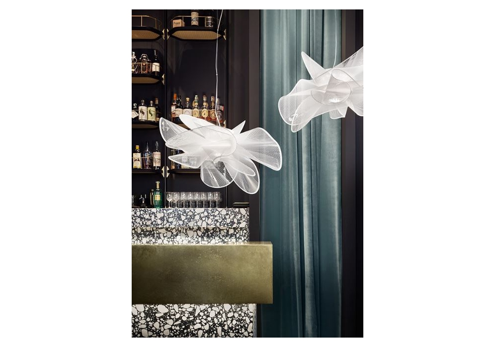 La Belle Étoile diseñada por Adriano Rachele para Slamp es una lámpara de suspensión completamente estructurada en Cristalflex® en diferentes acabados. La fuente de luz utilizada es del tipo LED regulable. La Belle Étoile está disponible en diferentes tamaños.