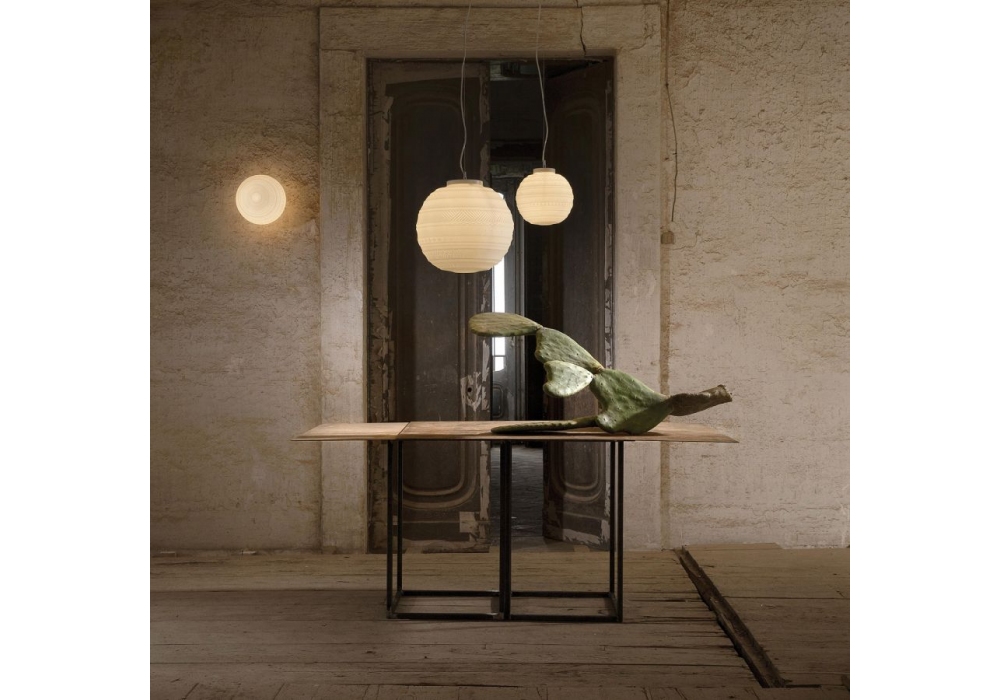 Braille diseñada por Matteo Ugolini para Karman es una lámpara de suspensión en cristal blanco satinado. Lámpara no incluida.