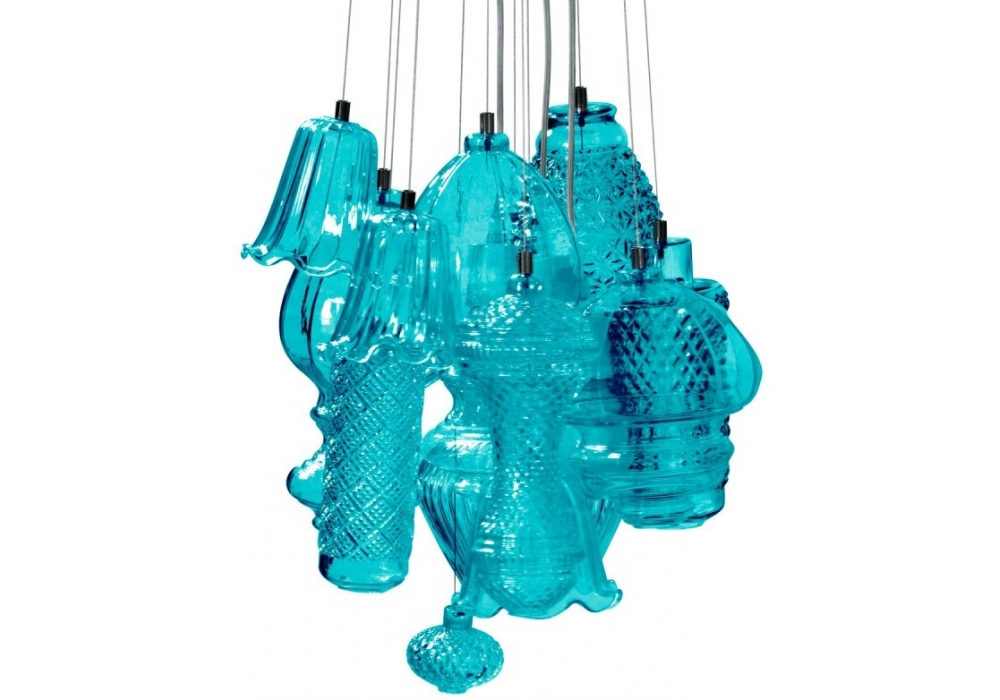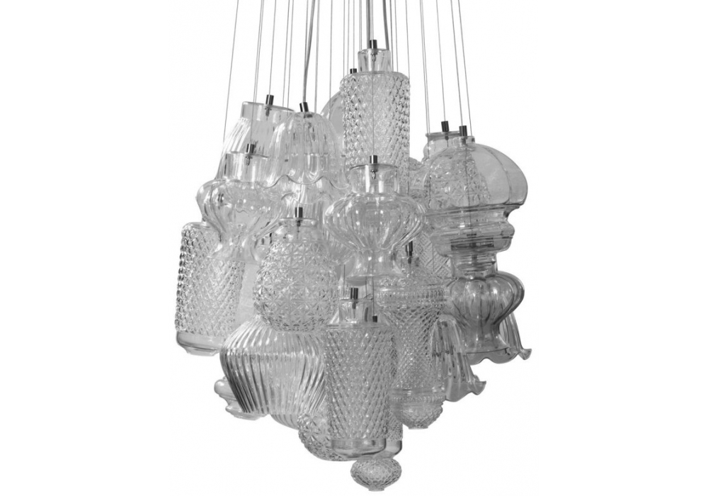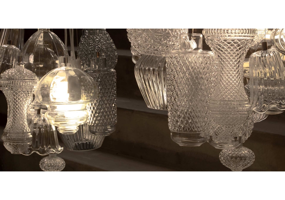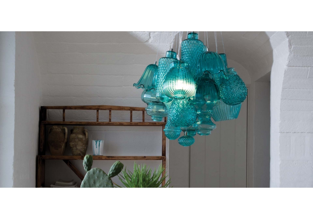 Ceraunavolta diseñada por Matteo Ugolini y Edmondo Testaguzza para Karman es una lámpara colgante de vidrio disponible en diferentes acabados y modelos.