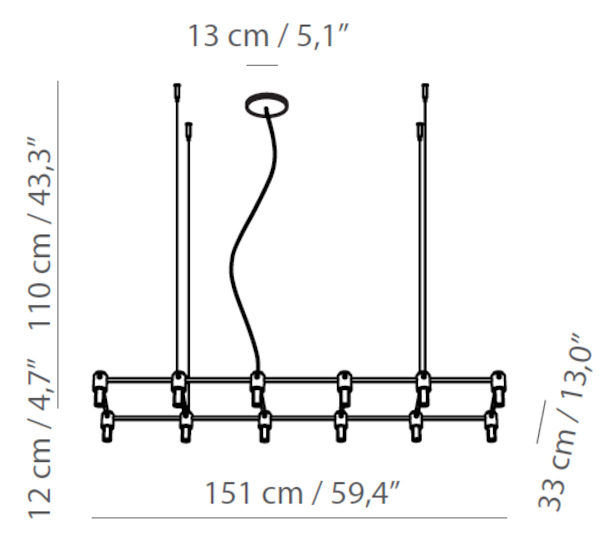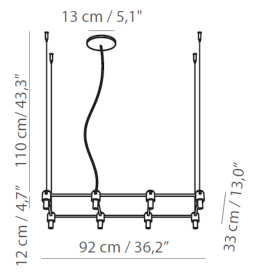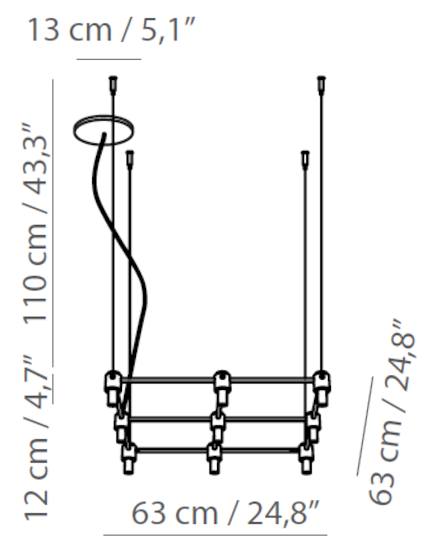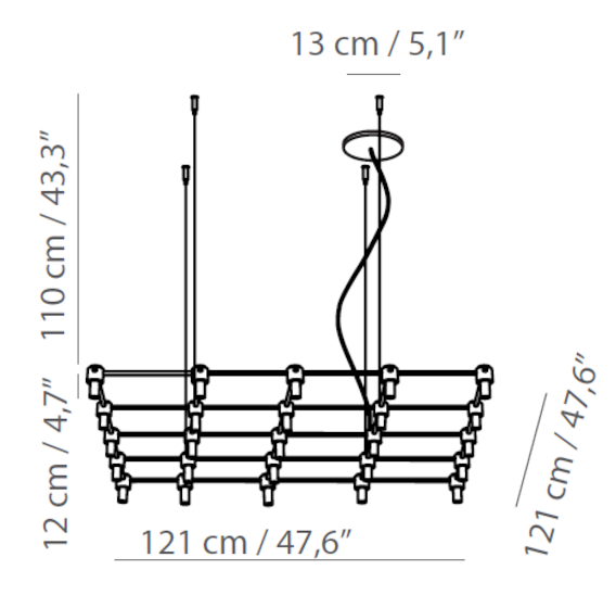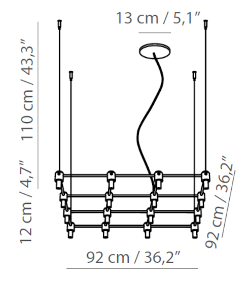 | Fuente luminosa | • 505.08: 8 x max 10W G9; • 505.09: 9 x max 10W G9; • 505.12: 12 x max 10W G9; • 505.16: 16 x max 10W G9; • 505.25: 25 x max 10W G9 |