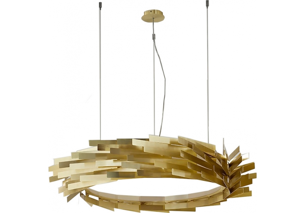 Jack 7380/1 diseñado por Olga Engel para MMLampadari es una lámpara de suspensión con estructura metálica cinética, disponible en tres variantes.