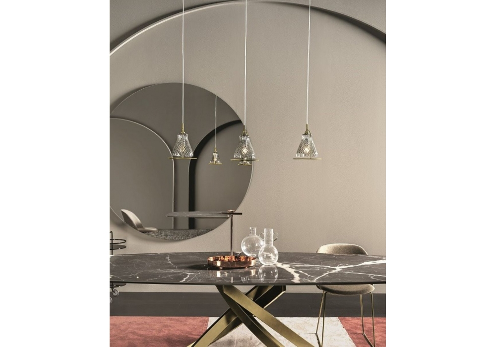 Funky diseñada por Marco Corti para Bontempi es una lámpara de suspensión en vidrio soplado con estructura metálica disponible en diferentes acabados. Bombilla no incluida.