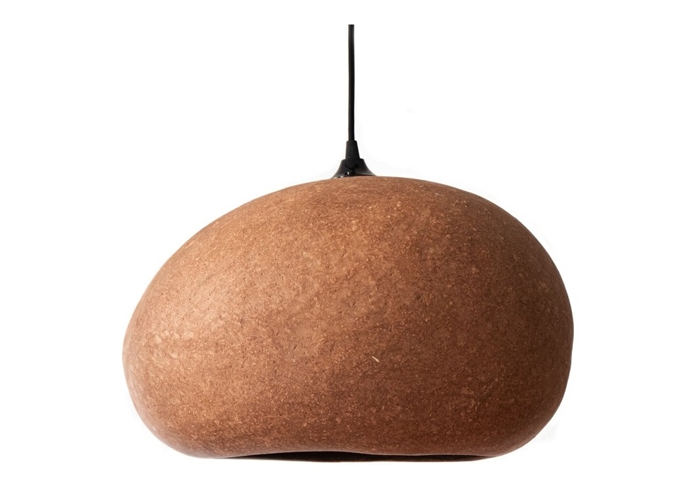 Pebble Terracotta diseñada por Ay Illuminate es una lámpara de suspensión en cartón reciclado color terracota, disponible en tres tamaños (pequeño, mediano, grande).