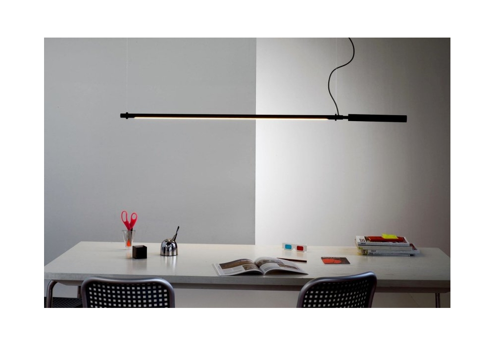 Colibrì 2087 diseñada por Emiliana Martinelli para Martinelli Luce es una lámpara de suspensión en aluminio tubular anodizado negro. La fuente de luz adoptada es del tipo LED integrado.