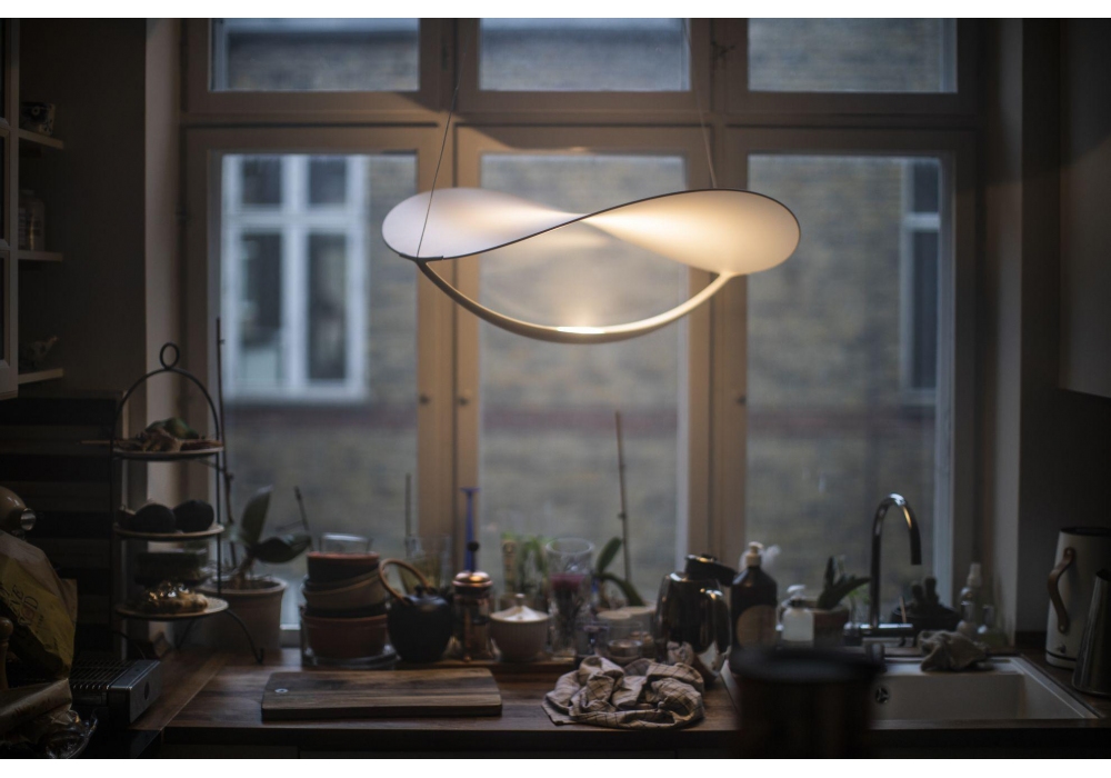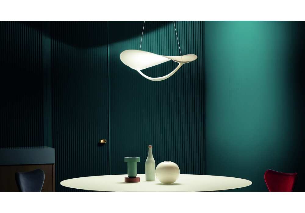 Plena diseñada por Eugenio Gargioni y Guillaume Albouy para Foscarini es una lámpara de suspensión estructurada por la combinación de pvc pintado de blanco y aluminio. La fuente de luz adoptada es de tipo LED en diferentes versiones regulables.