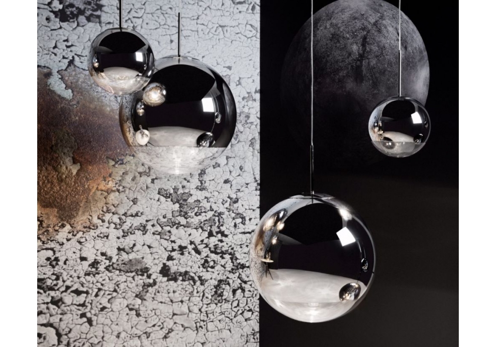 Mirror Ball diseñada por Tom Dixon es una lámpara de suspensión en policarbonato altamente reflectante, disponible en diferentes acabados y tamaños.
