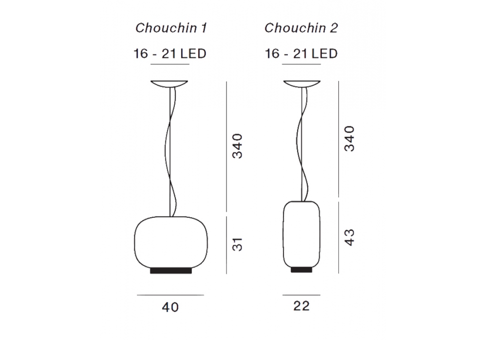| Dimensiones | Ø 40 x H 31 cm (Chouchin 1); Ø 22 x H 43 cm (Chouchin 2). |
