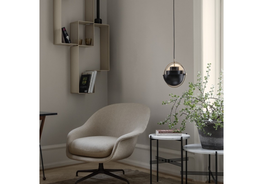 Multi-lite diseñado por Louis Weisdorf para Gubi es un colgante realizado en latón o cromo. Está disponible en diferentes acabados.