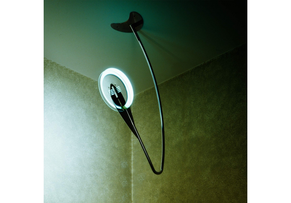 Occhio diseñada por Massimo Iosa Ghini para Memphis Milano es una lámpara de suspensión realizada en metal. Bombilla Neón 20W.