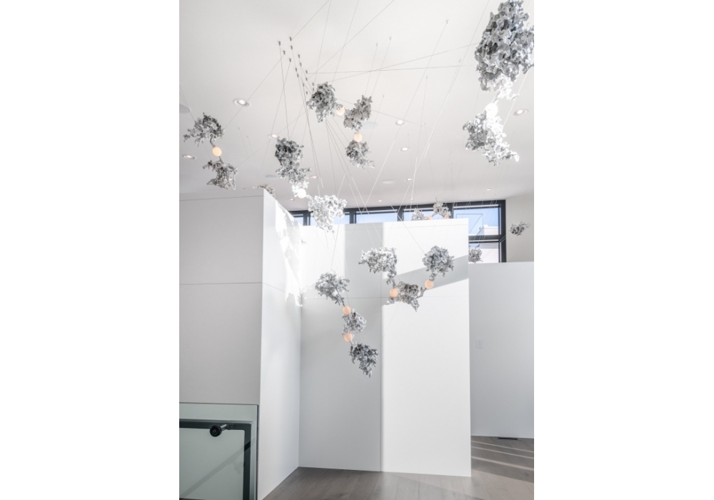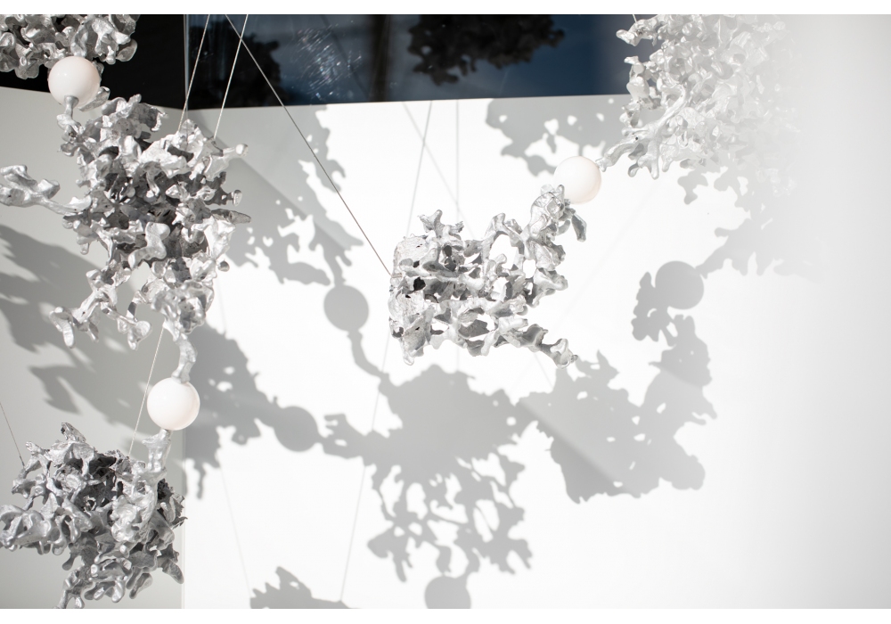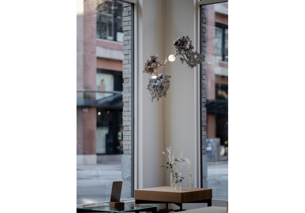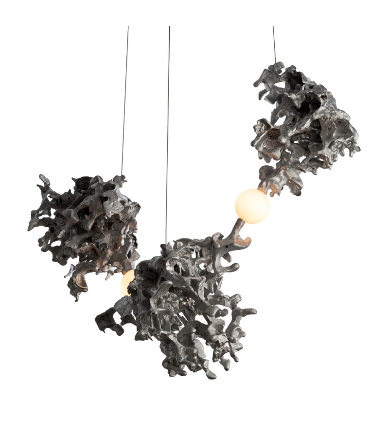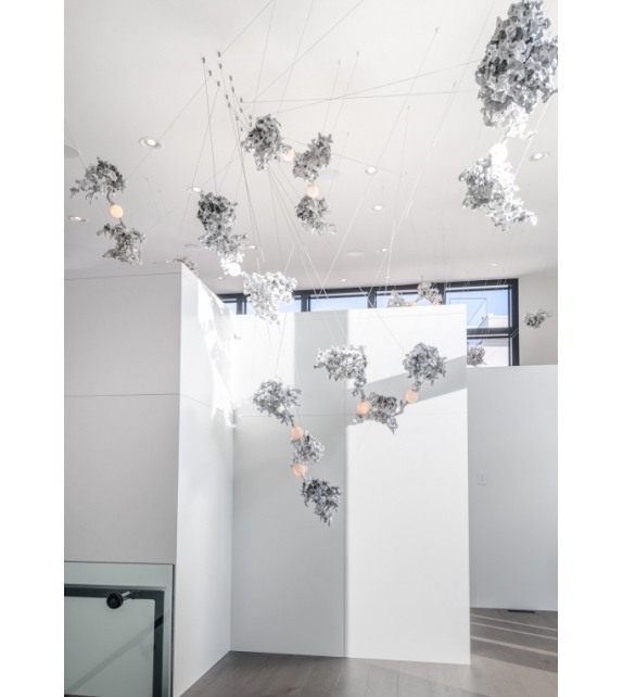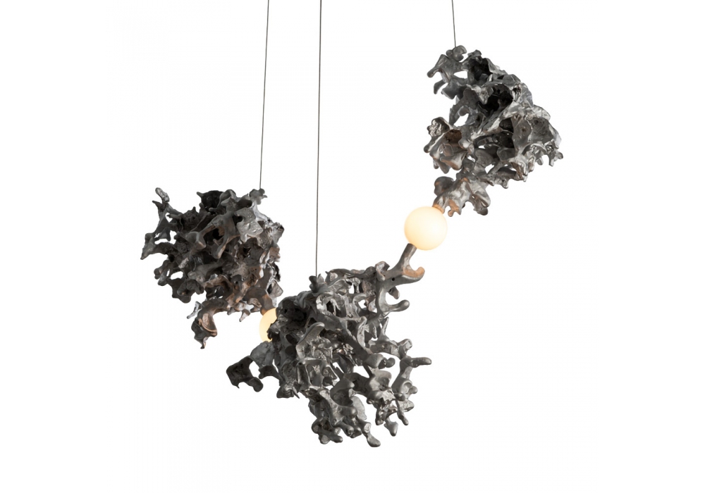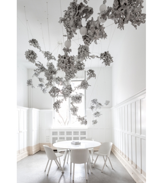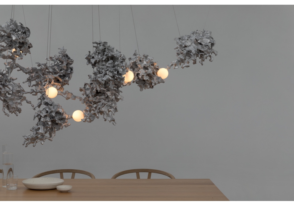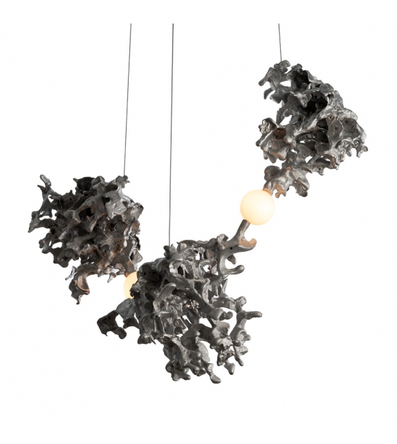 44 diseñada por Omer Arbel para Bocci es una lámpara de suspensión con diferentes cuerpos de lámpara con una forma abstracta en aluminio. El difusor con estructura esférica encierra una fuente de luz LED. 44 está disponible en diferentes versiones.