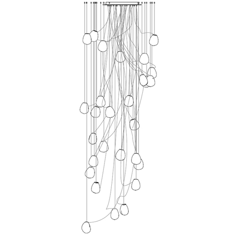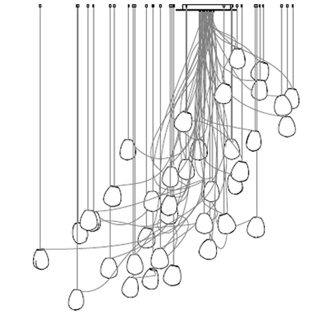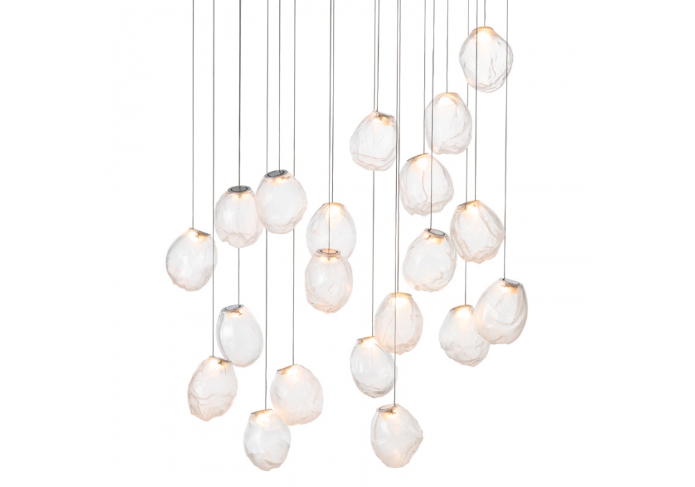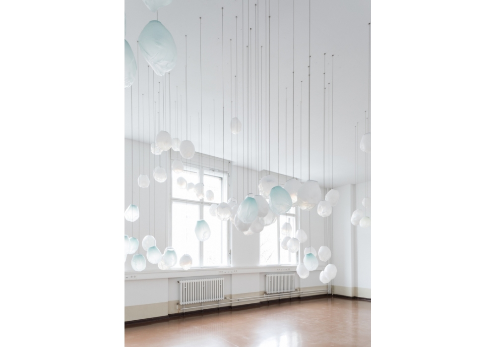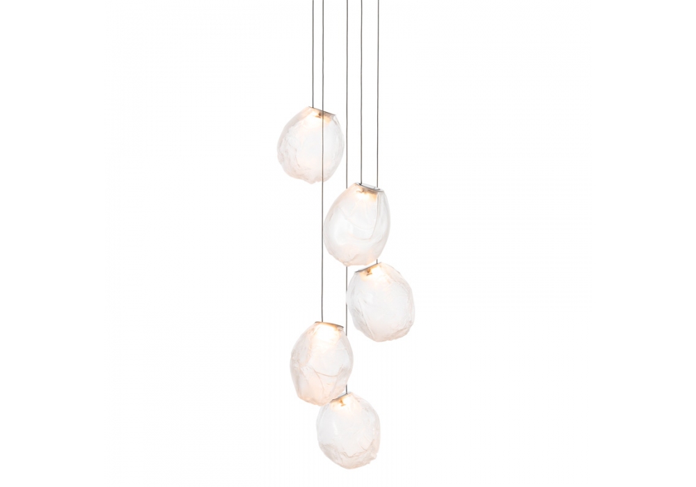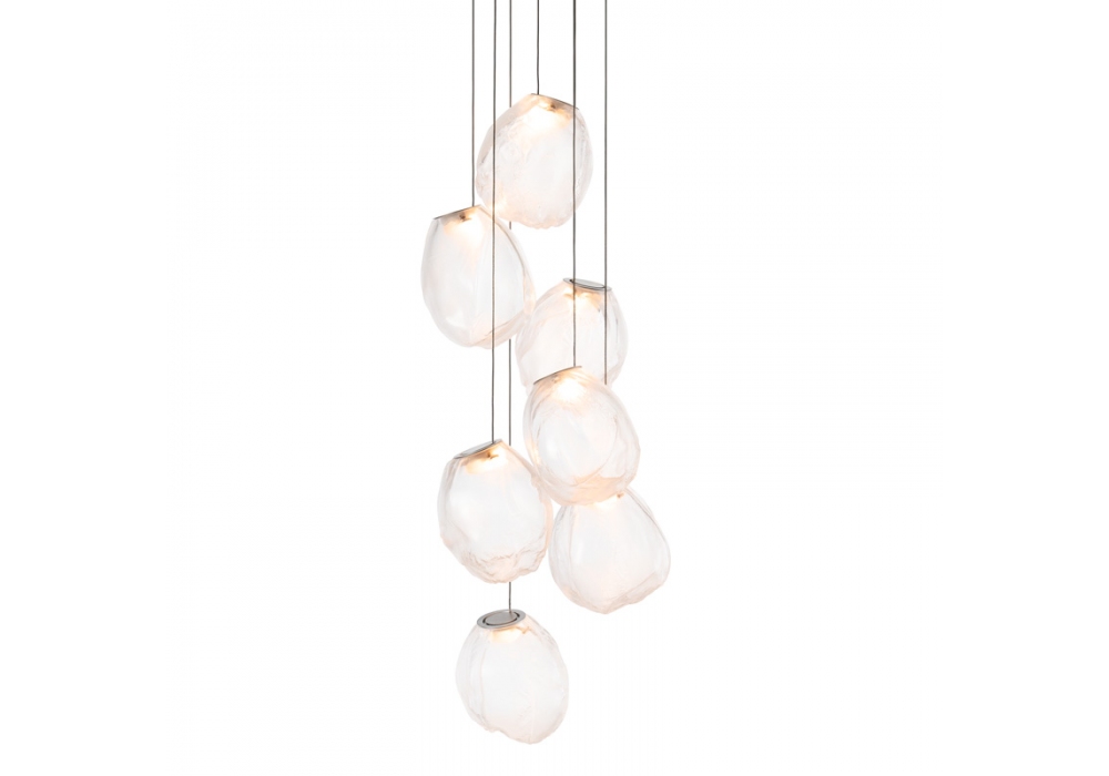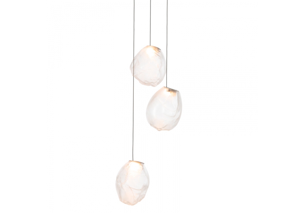 73 es la serie de lámparas de suspensión diseñada por Omer Arbel para Bocci. Se obtiene soplando el vidrio líquido dentro de un jarrón irregular de fibra cerámica resistente a altas temperaturas. La forma que se obtiene de vez en cuando recuerda estructuralmente la textura de una tela que se vuelve definitiva cuando se enfría. Se coloca un LED delgado de tal manera que llene todo el volumen con luz difusa para acentuar la percepción volumétrica de la pieza. En virtud de la fabricación, cada lámpara es única en su especificidad. La serie 73 fue concebida para crear sofisticadas composiciones que recuerdan a las nubes. Disponible en diferentes versiones.