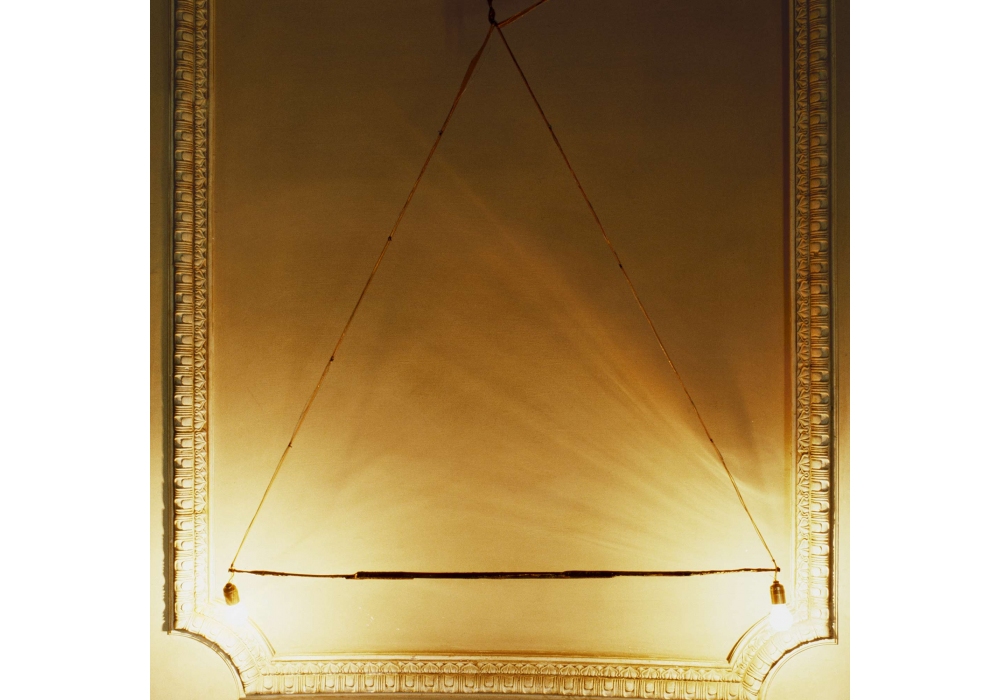 Haus Lange diseñada por Franz West para Memphis Milano es una lámpara de suspensión en bronce.