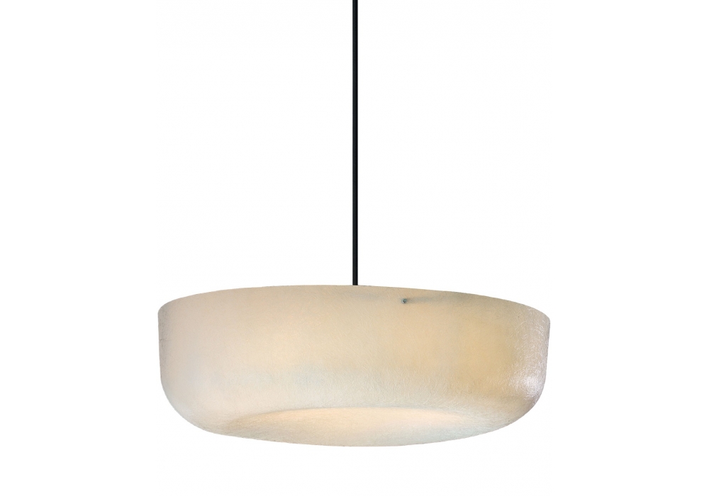 Ola Fly diseñada por Enrico Franzolini para Quadrifoglio Group es una lámpara de suspensión con pantalla en fibra de vidrio disponible en diferentes acabados y estructura en metal pintado negro goffratino.