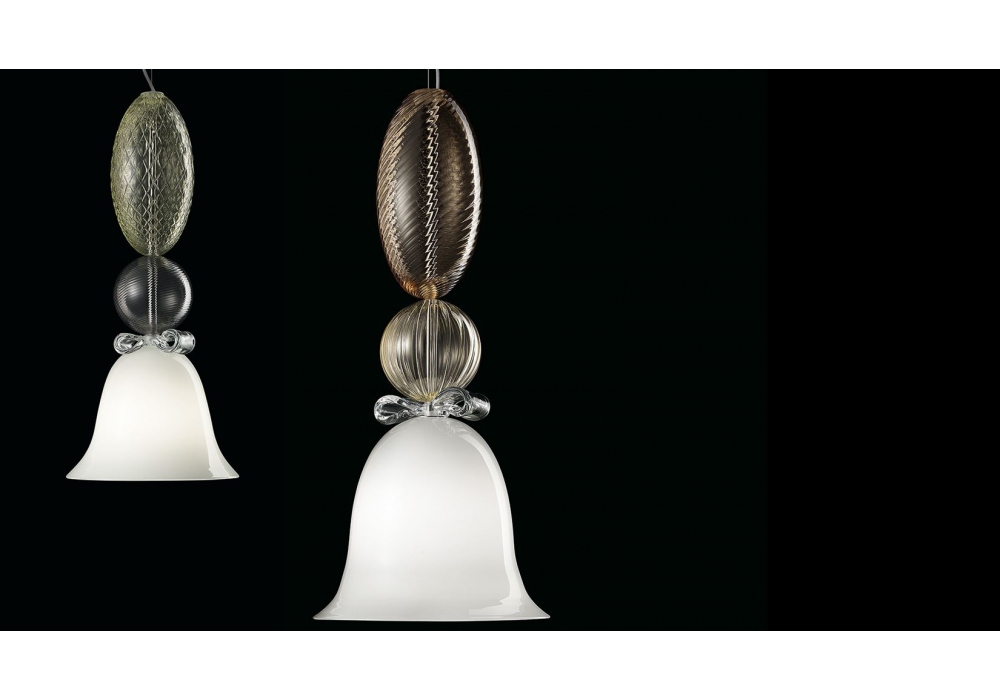 Perseus diseñada y producida por el estudio Marcel Wanders para Barovier & Toso es una lámpara de suspensión estructurada compuesta por una serie de elementos de cristal veneciano dispuestos en secuencia. El difusor es de cristal veneciano y alberga una fuente de luz LED o halógena regulable. Perseus está disponible en diferentes modelos y acabados.