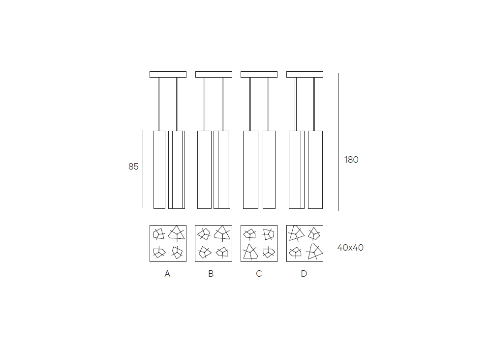 | Dimensiones | 20 x 20 x H 85/180 cm; 40 x 40 x H 85/180 cm; 40 x 60 x H 85/180 cm. |