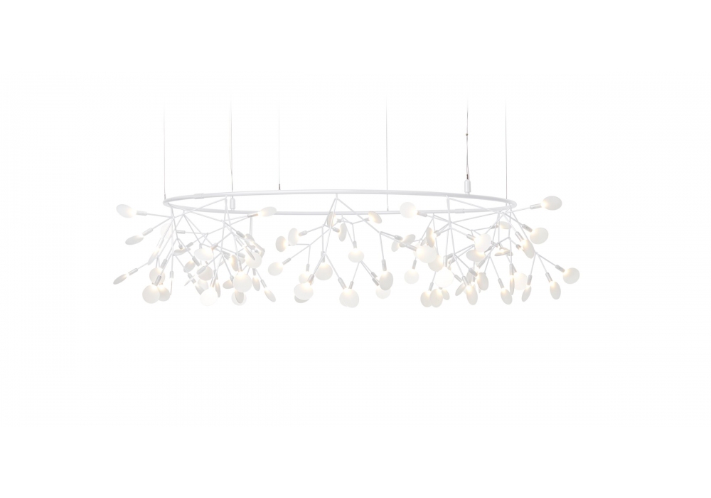 Heracleum III The Big O diseñada por Bertjan Pot para Moooi es una lámpara de suspensión. Lámpara LED decorativa inspirada en la Planta Heracleum. Las hojas / lentes blancas se ramifican desde una rama creando una estructura natural muy técnica. Al utilizar la técnica de recubrimiento de capas conductoras, la lámpara es muy delgada y delicada. Un diseño que no es posible con cables normales.