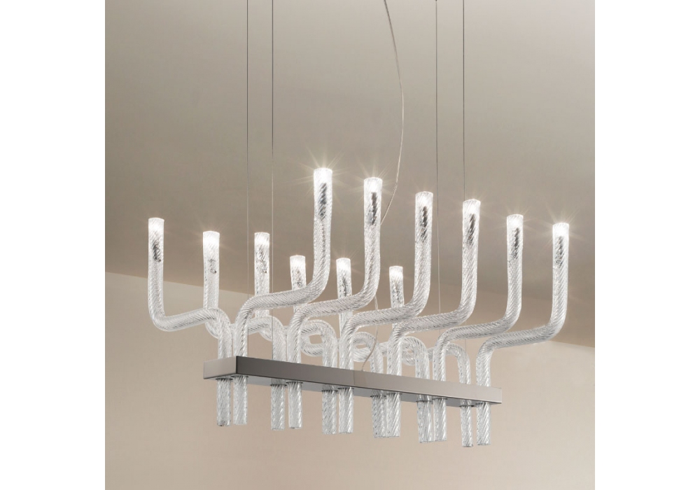 Stardust diseñada por Francesco Lucchese para Vistosi es una lámpara de suspensión con estructura portante en metal color níquel negro. Los difusores son de vidrio tubular con superficie rayada en acabado cristal rigadin y adoptan una fuente de luz regulable LED o halógena con conexión G9. Stardust está disponible en diferentes modelos.