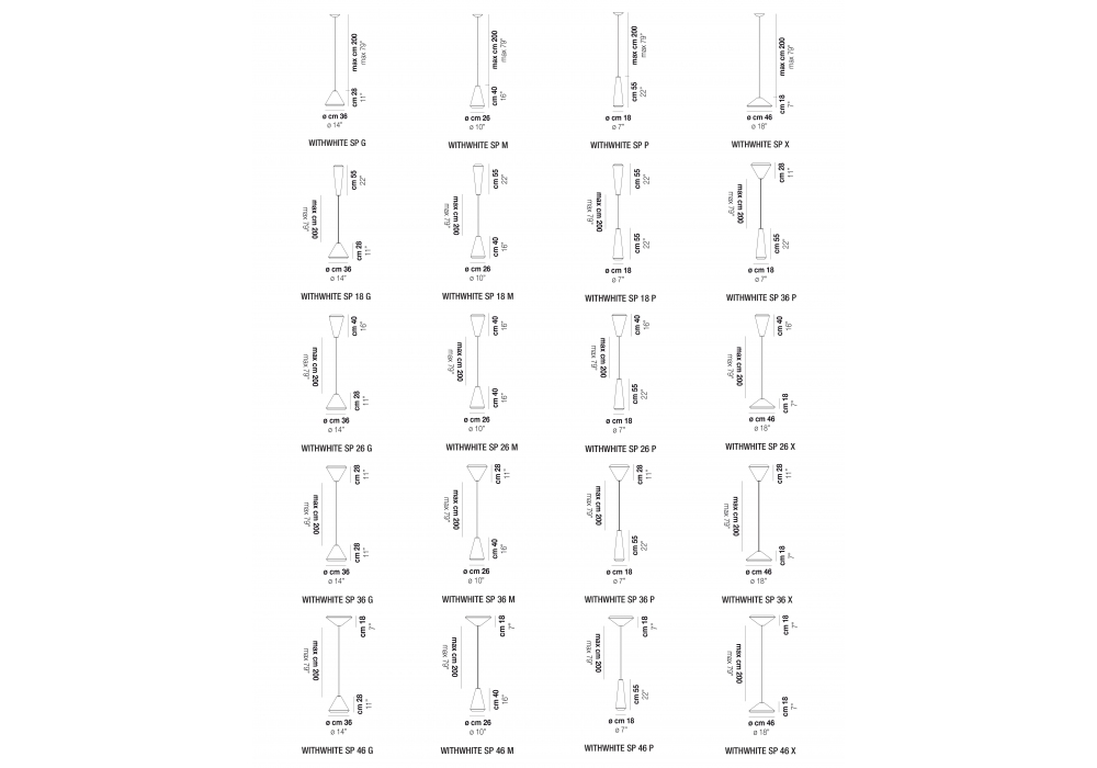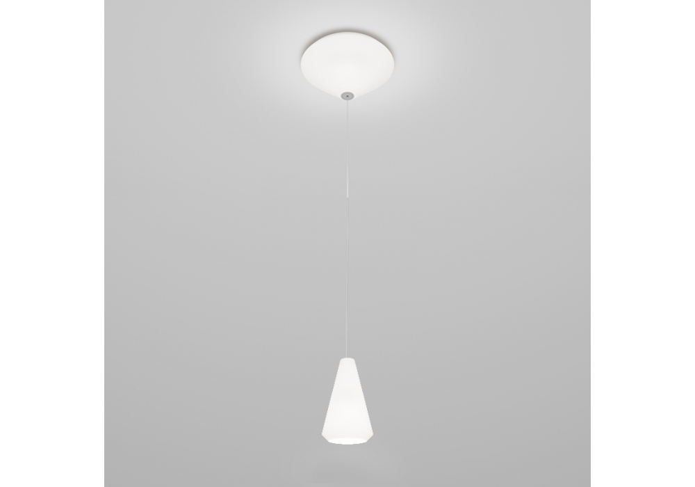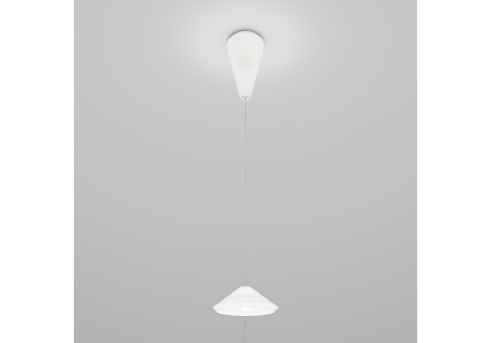 Withwhite diseñada por Mauro Olivieri para Vistosi es una lámpara de suspensión con estructura portante en metal blanco brillante. El difusor es de cristal cónico con acabado blanco satinado y adopta una fuente de luz regulable LED o halógena con casquillo E27. Withwhite está disponible en diferentes modelos.