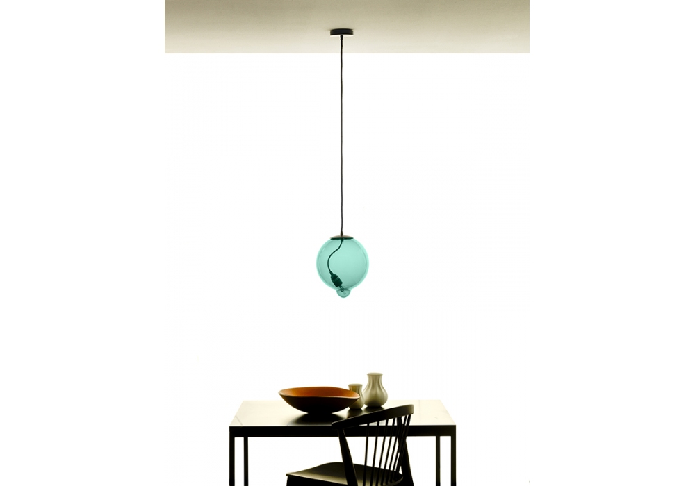 Meltdown diseñada por Johan Lindstèn para Cappellini es una lámpara de suspensión realizada con rosetón pintado de negro mate y difusor de cristal transparente coloreado. Disponible en diferentes acabados.