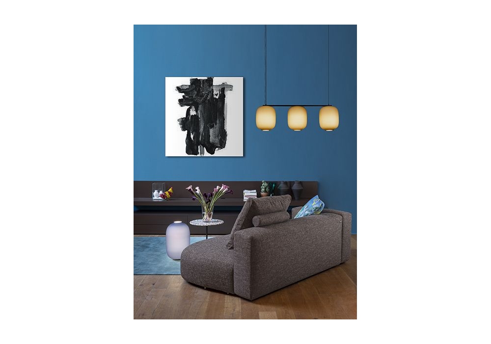 Arya diseñado por Giulio Cappellini & Antonio Facco para Cappellini es un sistema de suspensión realizado con fijación a techo en metal pintado negro mate y difusores de vidrio coloreado mate. Disponible en diferentes acabados y modelos.