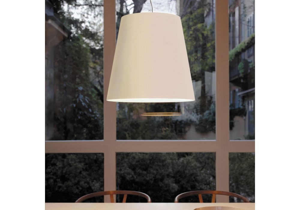 Amax diseñada por Charles Williams para Fontana Arte es una lámpara de suspensión de luz difusa regulable con estructura en metal cromado y difusor en polietileno blanco. El cable de suspensión es de acero, mientras que el cable de alimentación es de tejido rojo. Disponible en diferentes dimensiones.