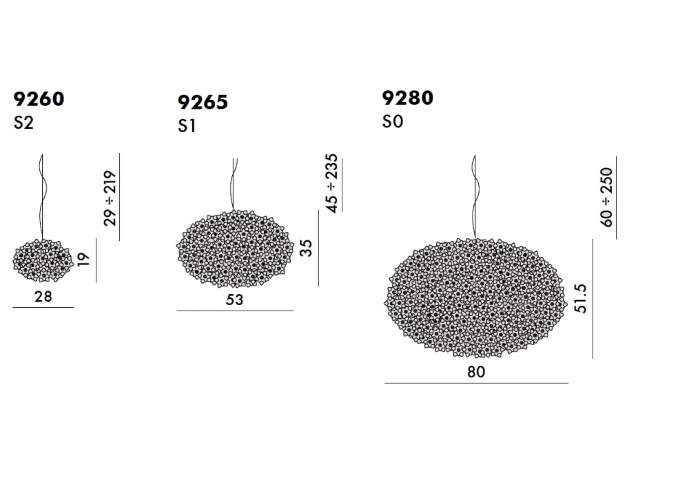 | Dimensiones | Ø 28 x H 19 cm; Ø 53 x H 35 cm; Ø 80 x H 51.5 cm. |