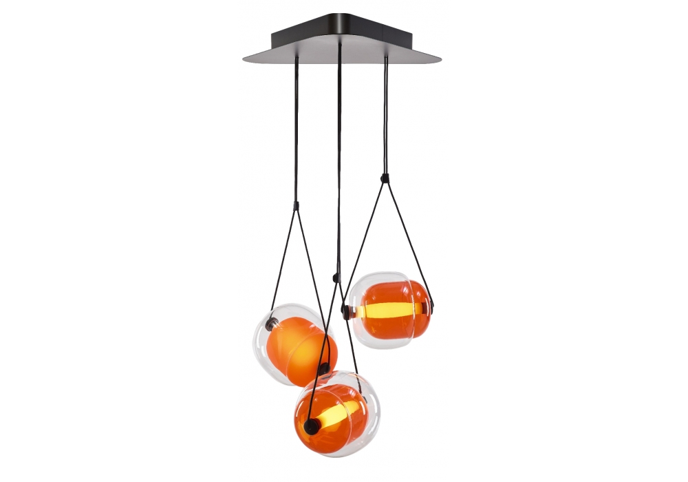 Capsula Triangle diseñada por Lucie Koldova para Brokis es una lámpara de suspensión, con una placa de soporte de forma triangular en metal pintado. El difusor está formado por dos cápsulas ovaladas de vidrio soplado en varios acabados, que se entrecruzan. El cuerpo de la lámpara está disponible en dos colores negro anodizado o plateado anodizado, y adopta una fuente de luz LED regulable (incluida) en varias versiones. El cable de alimentación es de material textil, y junto con la capota se puede elegir en varios colores.