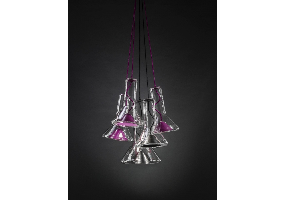 Whistle Set diseñada por Lucie Koldová para Brokis es una lámpara de suspensión con copa triangular en metal pintado en polvo. Los difusores son de vidrio soplado y apantallan una fuente de luz LED regulable, alimentada por un cable revestido de fibra textil. Whistle Set está disponible en diferentes acabados.