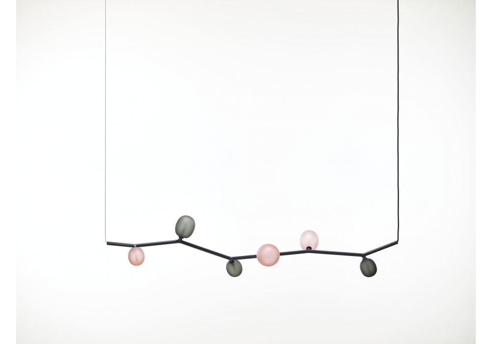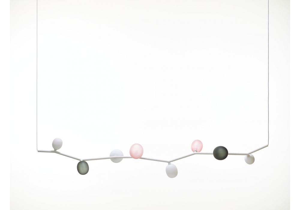 Ivy Horizontal diseñada por Lucie Koldová para Brokis es una lámpara de suspensión con una estructura de composición modular, que se desarrolla horizontalmente. El cuerpo de la lámpara es de metal con recubrimiento de polvo. Los difusores son de cristal opal y tienen tres tamaños diferentes en los colores opal triplex, gris humo o rosa claro. La fuente de luz utilizada es del tipo LED. Ivy Horizontal está disponible en diferentes medidas y acabados.