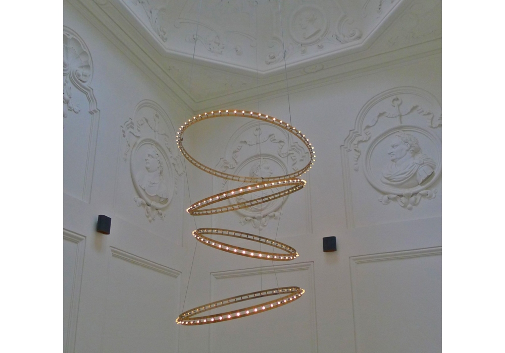 Citadel Composition Set diseñada por Jan Pauwels para Quasar es una lámpara de suspensión con cables de suspensión en níquel compuestos por varios anillos concéntricos descentralizados en metal pintado. Las fuentes de luz utilizadas son de tipo LED y se insertan en la parte externa de la estructura circular. Citadel Composition Set está disponible en diferentes modelos y acabados y, bajo pedido, con gradaciones de fuente de luz de 3000 K° o 3500 K°.
