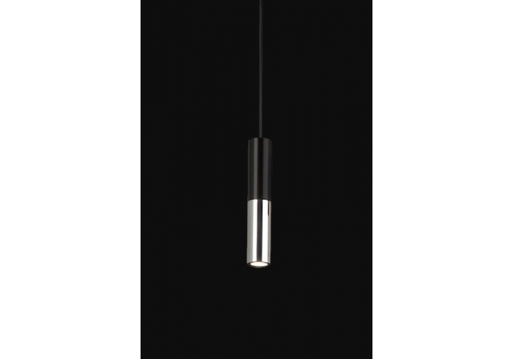 Io XL Quasar diseñada por Jos Muller para Quasar es una lámpara de suspensión con estructura cilíndrica de aluminio bicolor disponible en diferentes colores. La fuente de luz adoptada es de tipo LED regulable, con cable de alimentación negro y rosetón cromado.