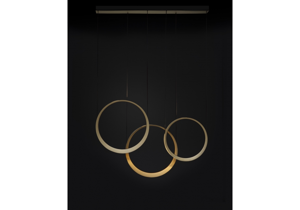 Moonlight Triple diseñada por Hoffmann Kahleyss para Quasar es una lámpara de suspensión con rosetón metálico cuadrangular. El cuerpo de la lámpara está estructurado por una correa de cuero enrollada alrededor de un cuerpo circular de metal pintado disponible en diferentes acabados. Las fuentes de luz adoptadas son de tipo LED y se ubican en la parte perimetral externa del cuerpo metálico circular. Moonlight Triple está disponible en diferentes modelos.