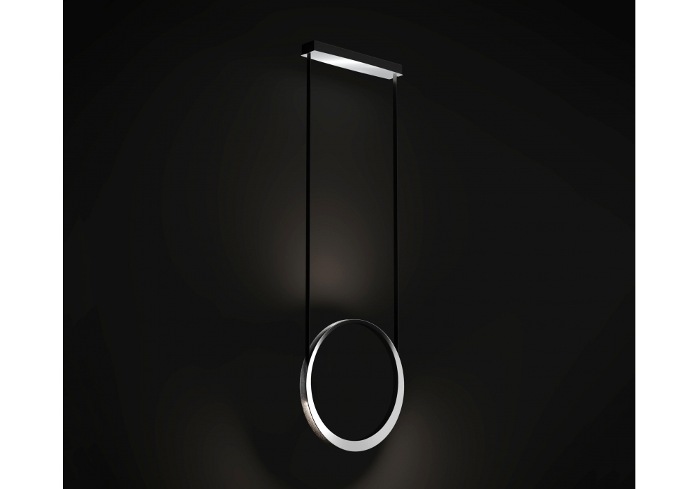 Moonlight Single diseñada por Hoffmann Kahleyss para Quasar es una lámpara de suspensión con rosetón metálico cuadrangular. El cuerpo de la lámpara está estructurado por una correa de cuero enrollada alrededor de un cuerpo metálico disponible en diferentes acabados. Las fuentes luminosas adoptadas son de tipo LED y se sitúan en la parte perimetral exterior del cuerpo metálico circular. Moonlight Single está disponible en diferentes modelos y, bajo pedido, con partes superior e inferior regulables por separado.