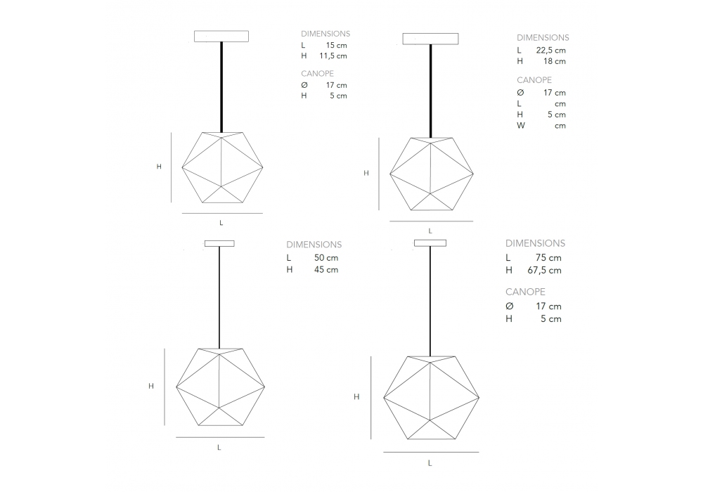 | Dimensiones | L 15 x W 15 x H 11,5 cm; L 22,5 x W 22,5 x H 18 cm; L 50 x W 50 x H 45 cm; L 75 x W 75 x H 67,5 cm |
