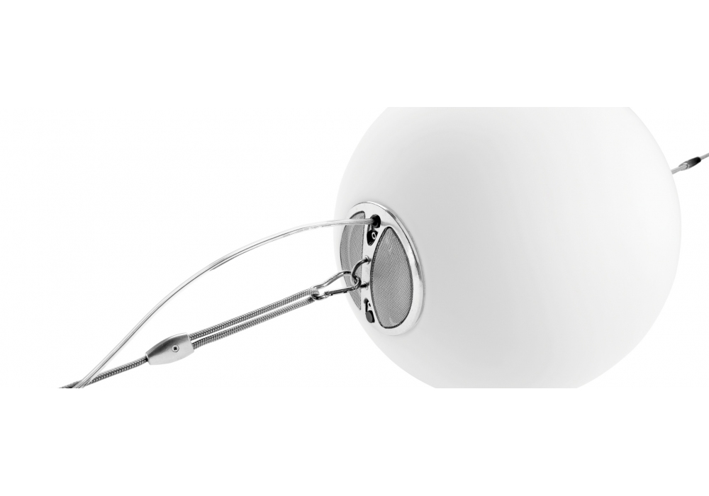 Perla diseñada por Ettore Cimini y Walter Monici para Lumina es una lámpara de suspensión con cúpula circular y cables de suspensión metálicos. El difusor es esférico de cristal soplado blanco con dos tacos de aluminio en los laterales para fijar los cables de suspensión. La fuente de luz adoptada es del tipo halógeno. Perla está disponible en dos modelos diferentes.